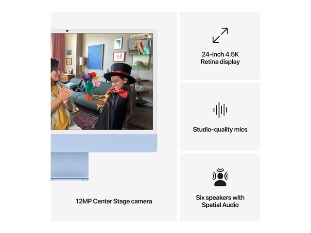 IMac. Den ultimate alt-i-ett-skrivebordet. Bygget for Apple Intelligence [1]. Med M4-chipen føles surfing og multitasking på tvers av apper raskere. Med en fantastisk 24-tommers 4,5K Retina-skjerm [2] i ikonisk design, og avansert kamera, mikrofoner og høyttalere. iMac er perfekt for både jobb og fritid.