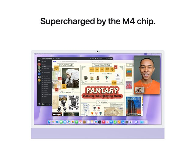 IMac. Den ultimate alt-i-ett-skrivebordet. Bygget for Apple Intelligence [1]. Med M4-chipen føles surfing og multitasking på tvers av apper raskere. Med en fantastisk 24-tommers 4,5K Retina-skjerm [2] i ikonisk design, og avansert kamera, mikrofoner og høyttalere. iMac er perfekt for både jobb og fritid.