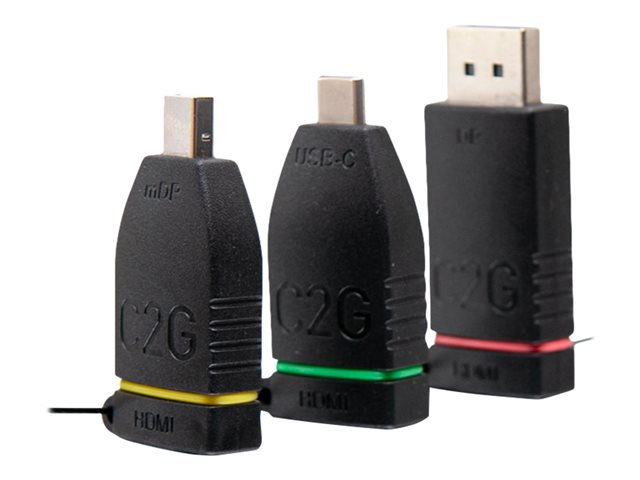 | Antall inkludert x Type | Video adapter - Mini DisplayPort (hann) til 19-pin HDMI type A (hunn) Video adapter - 20-pins DisplayPort (hann) til 19-pin HDMI type A (hunn) Video adapter - 24-pins USB-C (hann) til 19-pin HDMI type A (hunn) |