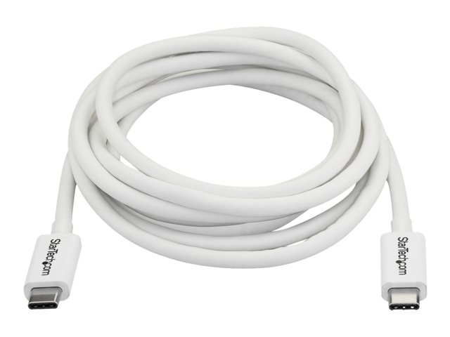 StarTech.com 6.6ft (2m) Thunderbolt 3 Cable, 20Gbps, 100W PD, 4K Video, Thunderbolt-Certified, Compatible w/ TB4/USB 3.2/DisplayPort - Thunderbolt-kabel - USB-C (hann) til USB-C (hann) - USB 3.1 Gen 2 / Thunderbolt 3 / DisplayPort 1.2 - 2 m - 4K-støtte - hvit - for P/N: CDP2HDUACP, CDP2HDUACPW