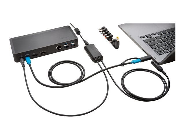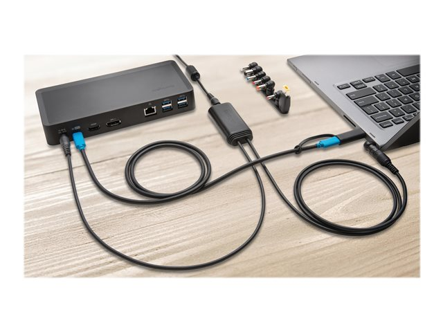 The 60W USB 3.0 Power Splitter for SD4700P allows for a truly universal solution that enables the docking station to power USB 3.0 enabled laptops. A cost-effective choice for environments with mixed deployments or shared workspaces, the Power Splitter's eight power tip adapters can be dongle-connected for quick access using the included retention rings to provide ample connection opportunities for Dell, HP, Lenovo, and other leading manufacturers.