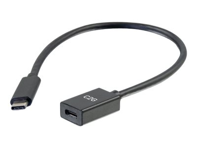 C2G 1ft USB-C to C 3.1 (Gen 1) Male to Female Extension Cable (5Gbps) - USB-forlengelseskabel - 24 pin USB-C (hann) til 24 pin USB-C (hunn) - USB 3.1 Gen 1 / Thunderbolt 3 - 3 A - 30 cm - formstøpt - svart