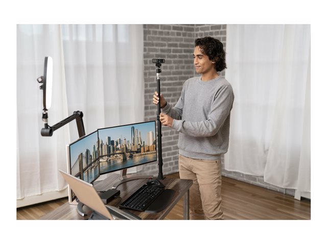 • Manually adjust your webcam up to 37° vertically and 360° horizontally to ensure the best camera angles, and use the electronic pan, tilt, and 2x zoom (ePTZ) to optimize your video frame
