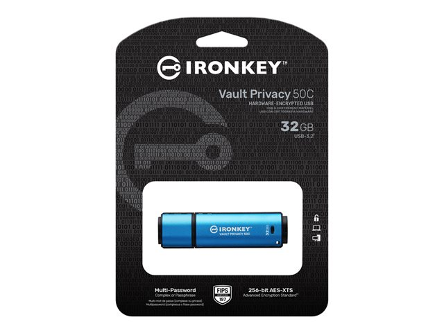 Kingston IronKey Vault Privacy 50C - USB-flashstasjon - kryptert - 32 GB - USB-C 3.2 Gen 1 - TAA-samsvar IKVP50C/32GB
