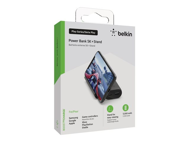 The Belkin BoostCharge Play Series power bank is a versatile and powerful charging solution designed for the modern mobile user. With a 5000 mAh capacity, it provides ample power to keep your devices charged throughout the day. Its unique built-in stand feature allows for hands-free viewing, making it perfect for watching videos or conducting video calls without interrupting the charging process. The power bank comes equipped with a USB-C to USB-A cable, ensuring compatibility with a wide range of devices, including cellular phones and tablets. Additionally, the LED indicator helps you easily monitor your device's charging status, while the equipment protection value of 2500 US Dollars offers peace of mind by safeguarding your devices against potential damage. Whether you're at home, in the office, or on the go, the Belkin BoostCharge Play Series power bank is your reliable partner for staying connected and powered up.
