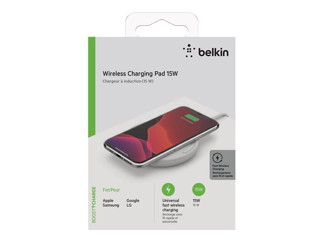 Designed to deliver fast wireless charging for the latest smartphones, the 15W BOOST CHARGE Wireless Charging Pad couldn't be easier to use. Unclutter your bedroom, office, or kitchen counters by going wireless - just place your phone on the pad and start charging instantly. LED light indicators and non-slip surface keep your phone charging correctly, and a 24W Quick Charge 3.0 power supply unit is included.