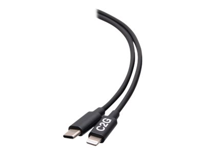 C2G 6ft (1.8m) USB-C Male to Lightning Male Sync and Charging Cable - Black - Lightning-kabel - 24 pin USB-C hann til Lightning hann - 1.83 m - svart - USB Power Delivery (20 W), up to 480 Mbps