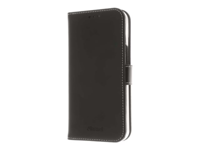 Insmat Exclusive Flip Case - Lommebok for mobiltelefon - ekte skinn, polykarbonat, bomullssting, kartong+papir - svart - for Apple iPhone 14 Pro Max