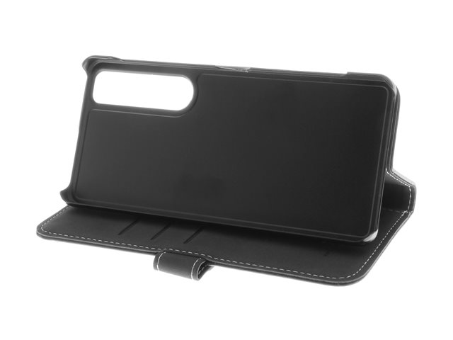 Insmat Exclusive Flip Case - Lommebok for mobiltelefon - ekte skinn, kartong+papir, polykarbonat, bomullssting - svart - for Sony XPERIA 1 VI 650-3252
