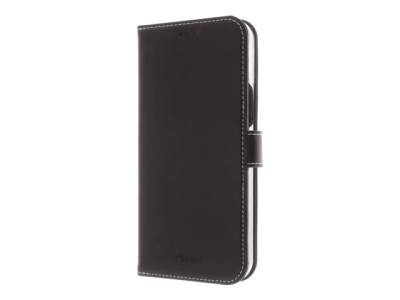 Insmat Exclusive - Lommebok for mobiltelefon - ekte skinn, termoplast-polyuretan (TPU), kartong+papir+aluminiumsfolie, bomullssting - svart - for Apple iPhone 13 Pro Max