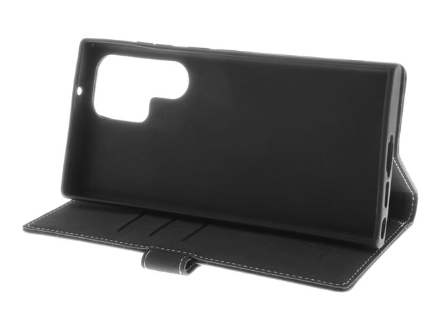 Insmat Exclusive - Lommebok for mobiltelefon - ekte skinn, papir, polyuretan, kartong, bomull, aluminiumsfolie, bronse, termoplast-polyuretan (TPU) - svart - for Samsung Galaxy S23 Ultra