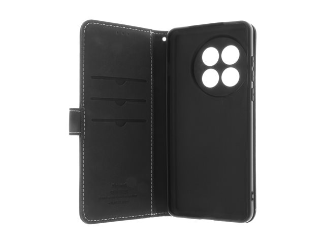 Insmat - Lommebok for mobiltelefon - ekte skinn, kartong+papir+aluminiumsfolie, termoplast-polyuretan (TPU), bomullssting - svart - for OnePlus 13R 650-3312