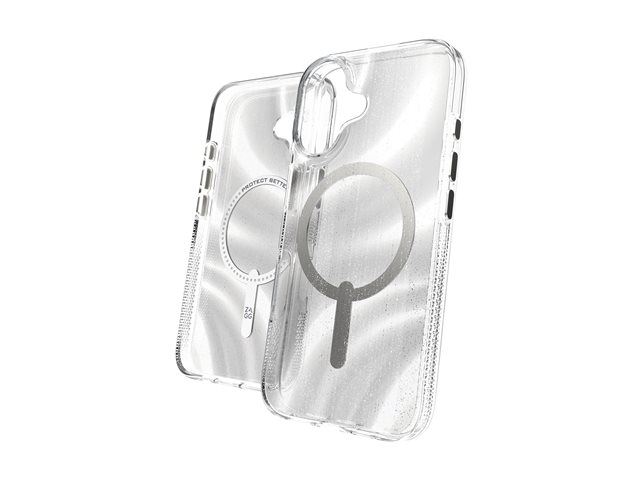 The ZAGG Milan Snap is a protective cover designed for cell phones, combining functionality with style. Crafted from lightweight graphene, this case features a slim design that ensures a secure grip without adding bulk. It is equipped with wireless charging support, allowing users to keep their devices powered effortlessly. With drop protection up to 4 m and compliance with MIL-STD 810G 516, this case offers reliable protection while showcasing an iridescent finish made from 84% recycled materials, making it a sustainable choice for environmentally conscious consumers.