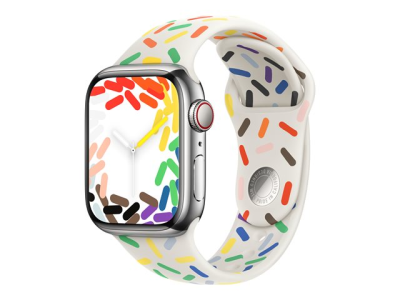 Sportsbåndet i Pride Edition har et gledesfylt design med et bredt spekter av livlige farger for å feire skjønnheten og mangfoldet i LHBTQ+-samfunnet. I tillegg til fargene i Pride-flagget symboliserer svart og brunt marginaliserte, fargede LHBTQ+-miljøer og de som er rammet av HIV/AIDS. Lyseblått, rosa og hvitt symboliserer transpersoner og ikke-binære.