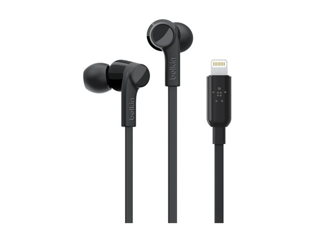 Belkin ROCKSTAR - Ørepropper med mikrofon - i øret - kablet - Lightning - lydisolerende - svart - for Apple 10.5-inch iPad Pro; iPad mini 4; iPhone 7, 7 Plus, 8, 8 Plus, X, XR, XS, XS Max