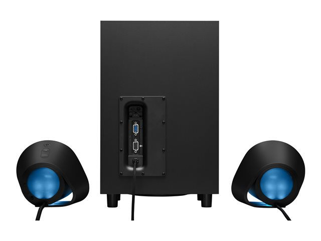 G560 fungerer også som et lydkontrollsenter. Volumkontroll både fremst og på midten. Bluetooth-sammenkobling utføres med ett tastetrykk. En programmerbar G-tast blar automatisk gjennom fargelysstyrke som standard og kan aktivere alt fra en integrert spillfunksjon til å starte et lydprogram via LGS. Av/på-knappen er også lett tilgjengelig på baksiden av høyre satellitthøyttaler.