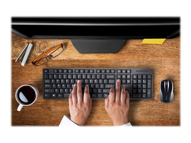 Kensington Pro Fit Low-Profile Desktop Set - Tastatur- og mussett - trådløs - 2.4 GHz - Fransk - svart