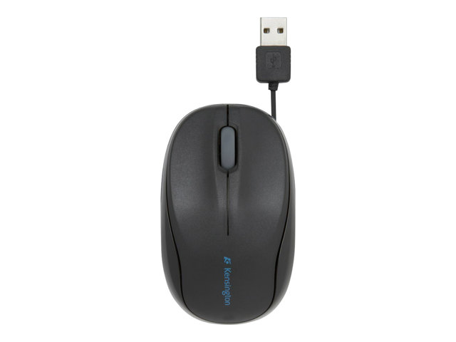 Kensington Pro Fit Retractable Mobile - Mus - optisk - 3 knapper - kablet - USB - svart