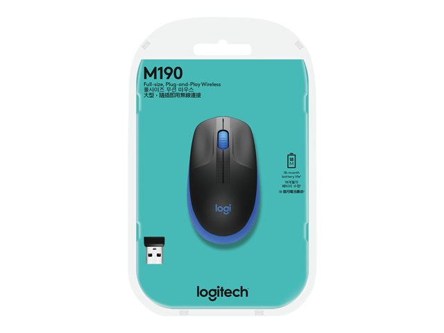 Logitech M190 - Mus - optisk - 3 knapper - trådløs - USB trådløs mottaker - blå