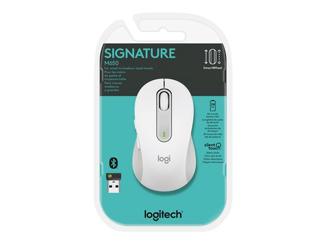 Oppgrader til smartere rulling, bedre komfort og mer produktivitet. Signature M650 har SmartWheel-rulling som tilbyr presisjon eller hastighet i det øyeblikket du trenger det. Sømløs trådløs tilkobling, lydløse klikk, tilpassbare sideknapper og en ergonomisk utforming som holder deg komfortabel og produktiv time etter time.