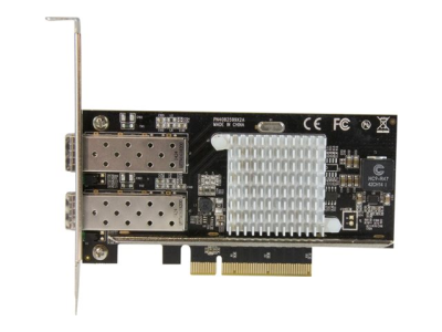 Add two 10 Gigabit Fiber Ethernet ports (10 Gbps per port) to your server or workstation - using the SFP+ transceiver of your choice. Get fast, high-bandwidth connectivity with this cost-effective fiber network card. It adds two open SFP+ slots to your server or high-powered workstation, giving you an easy way to connect your server or workstation to a 10 Gigabit fiber network using the SFP+ modules of your choice.