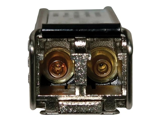 The Eaton Tripp Lite Series Cisco-Compatible GLC-SX-MMD SFP Transceiver is a high-performance, LC duplex MMF module designed for superior network connectivity. This transceiver module is engineered to support Gigabit Ethernet applications, providing a data transfer rate of 1.25 Gbps across distances up to 550 m (1804 ft.). It features robust EMI/RFI protection and a durable metal housing, ensuring reliable performance in diverse operating conditions. With compliance to key standards such as RoHS and EN 55032, it meets stringent environmental and safety requirements. The module's hot-swappable design, combined with Digital Diagnostics Monitoring (DDM), offers enhanced operational flexibility and real-time monitoring capabilities, making it an essential component for efficient network management and maintenance.
