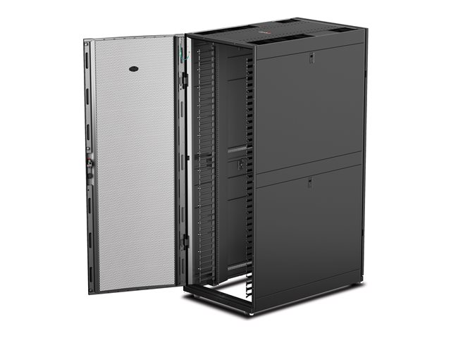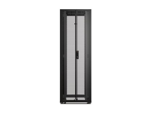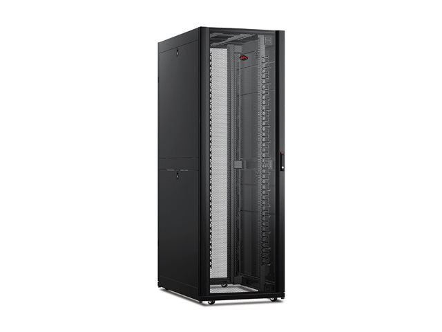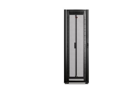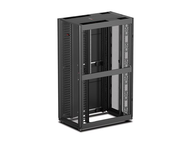 NetShelter SX networking enclosure expands APC's superior IT enclosure line with improved support for high density networking applications. Integrated high density cable managers and improved cable access roof provide support for large cable bundles. When combined with the side airflow duct kit, the networking enclosure ensures complete isolation of cold intake and hot exhaust air for large switches and SAN directors.