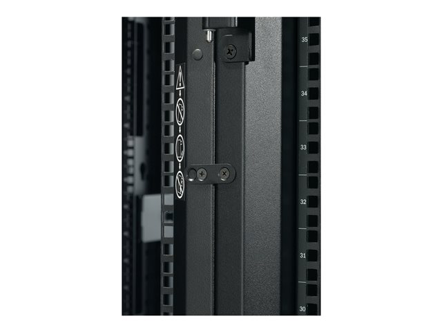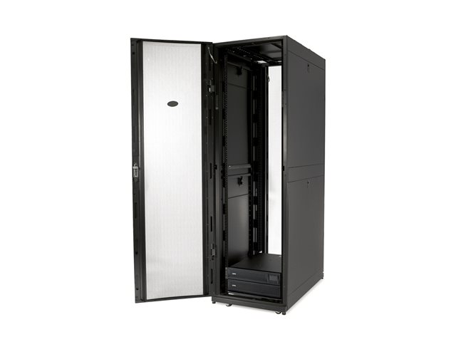 NetShelter SX enclosures are optimized for use with high capacity cable management systems that attach to equipment mounting rails inside enclosures aligning with equipment mounting u-spaces and provide channels for routing and managing cabling.
