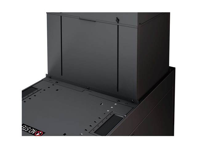 Vertical Exhaust Duct (VED) system for NetShelter SX is a low cost easy to install solution that mounts to the top rear of NetShelter enclosures to capture and return hot exhaust air to room cooling systems.