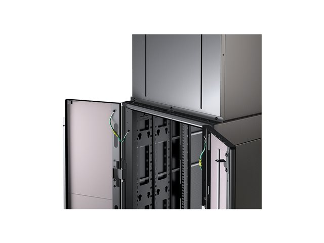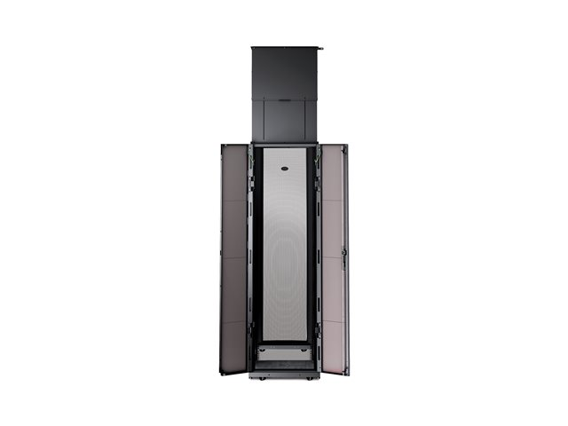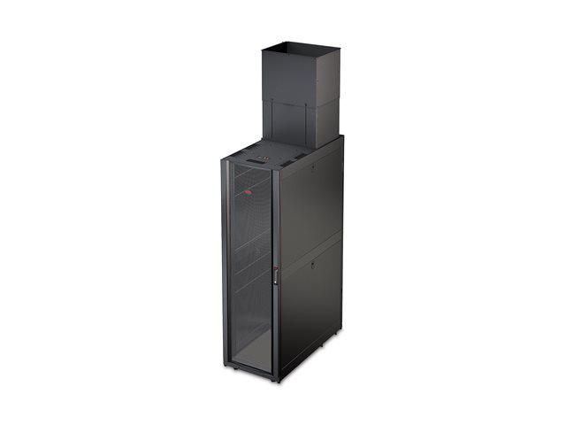 Vertical Exhaust Duct (VED) system for NetShelter SX is a low cost easy to install solution that mounts to the top rear of NetShelter enclosures to capture and return hot exhaust air to room cooling systems.