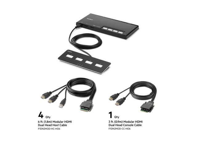 Belkin Modular Secure Dual Head - KVM-svitsj - 4 x KVM port(s) - 1 lokalbruker - stasjonær - TAA-samsvar F1DN204MOD-HH-4