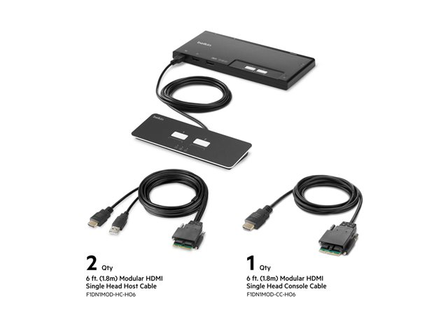 Belkin Modular Secure Single Head - KVM-svitsj - 2 x KVM port(s) - 1 lokalbruker - stasjonær - TAA-samsvar F1DN102MOD-HH-4