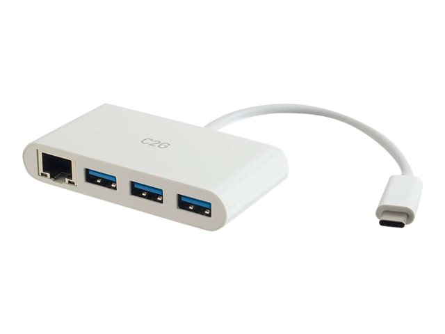 C2G USB C Hub with Ethernet - 3-Port USB Hub - Hub - 3 x SuperSpeed USB 3.0 + 1 x USB-C + 1 x 1000Base-T - stasjonær 29746
