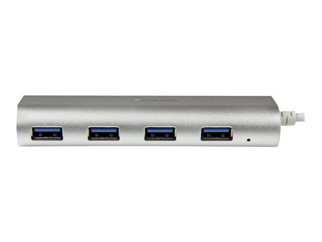 StarTech.com 4 Port Portable USB 3.0 Hub with Built-in Cable - Aluminum and Compact USB Hub (ST43004UA) - Hub - 4 x SuperSpeed USB 3.0 ST43004UA