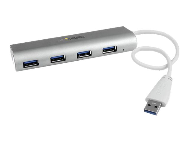 StarTech.com 4 Port Portable USB 3.0 Hub with Built-in Cable - Aluminum and Compact USB Hub (ST43004UA) - Hub - 4 x SuperSpeed USB 3.0