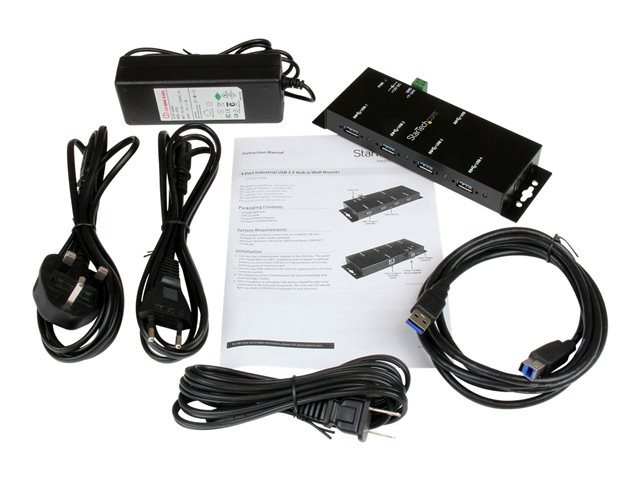StarTech.com 4-Port USB 3.0 Hub - Metal Industrial USB-A Hub - Wall or Desk Mountable USB Data Hub - TAA Compliant USB Expander Hub (ST4300USBM) - Hub - 4 x SuperSpeed USB 3.0 - stasjonær - DC-strøm - for P/N: ITB20D3250, MSDREADU2OTG, SVA12M5NA, USB312SAT3CB, USB315CB2M, USBLTM1MBK, USBLTM1MWH ST4300USBM