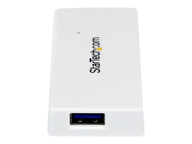Add four external USB 3.0 ports to your notebook or Ultrabook with a slim, portable hub. The ST4300MINU3W Portable 4 Port SuperSpeed Mini USB 3.0 Hub (White) lets you expand your USB connectivity by turning a single USB 3.0 port into four external USB 3.0 ports. The integrated cable design makes this mini USB hub the perfect accessory for your Mac / PC notebook or Ultrabook computer.