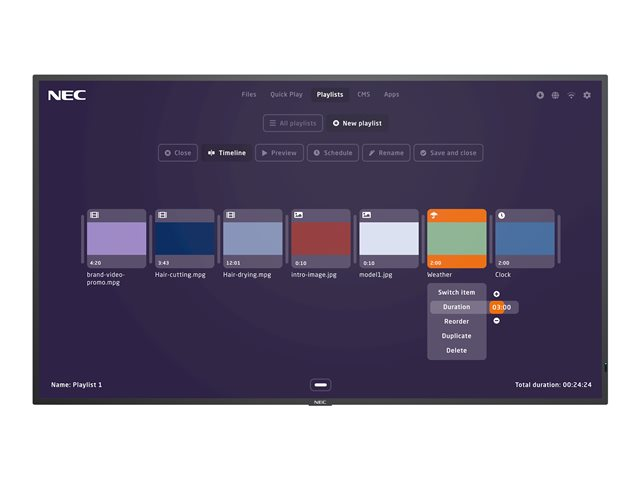 • Install third party software - expand the NEC MediaPlayer functionality via additional Apps or even switch to your preferred Content Management Systems (CMS) directly from of the NEC MediaPlayer