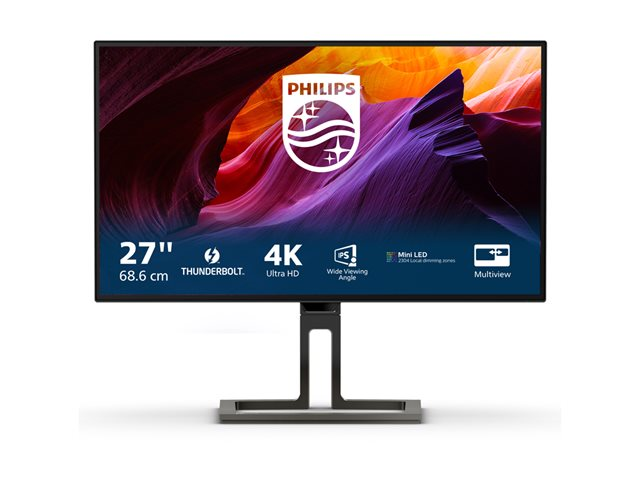 Philips Thunderbolt 4-skjermen gir en sikker og pålitelig dockingløsning med én kabel. Mini LED-bakgrunnsbelyst og DisplayHDR 1400-sertifisert skjerm gir enestående bildeytelse og fargenøyaktighet for fargekritiske brukere.