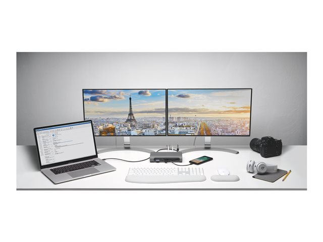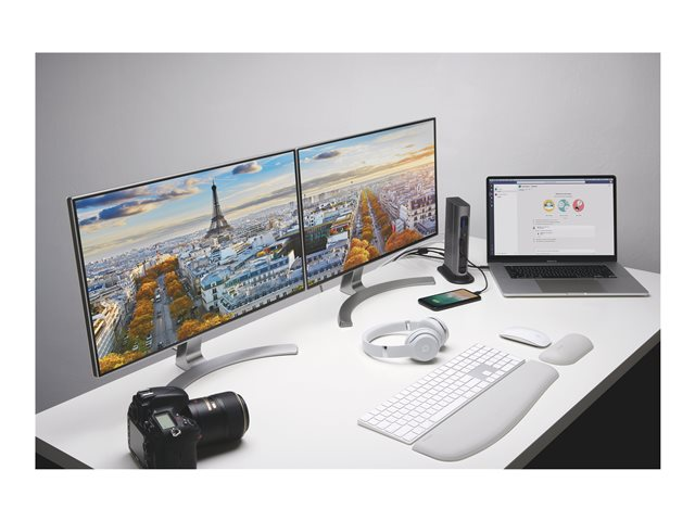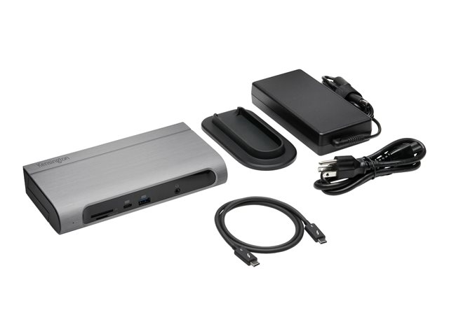 The SD5600T Thunderbolt 3 and USB-C Dual 4K Hybrid Docking Station - 100W PD - Win/Mac is the ultimate docking station for maximum productivity and compatibility. Features include universal compatibility, the flexibility to select between HDMI 2.0 and DP 1.2, horizontal or vertical placement options, built-in SD and Micro SD card readers, seven USB ports (two with charging), one Gigabit Ethernet port and one audio combo jack.