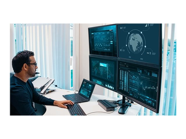 Boost productivity and performance with the world's first enterprise-class universal docking station to deliver four 4K extended displays. Ideal for large enterprises - the Targus USB-C Universal Quad 4K (QV4K) Docking Station maximizes workstation viewing. Dual DisplayLink DL-6910 chip technology supports up to four DisplayPort (3840 x 2160 p60) or HDMI (3840 x 2160 p50) displays. The docking station includes numerous additional ports to connect your essential USB 3.0 peripherals and Ethernet network.