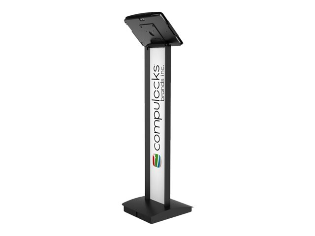 Our BrandMe floor stand allows you to utilize a panel for branding, call to action or custom design to bring attention to your interactive display or kiosk. The tilting mount allows the iPad enclosure to be set in either portrait or landscape mode and the stand base offers additional security features, securing the power source and bolting the unit to the floor.