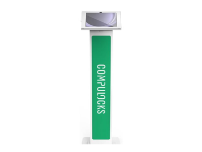 Compulocks Galaxy Tab A9+ Apex Enclosure Brandable Floor Stand - Monteringssett (hus, stativ) - synlige foran/bak kamera og sensorer - for nettbrett - fast 45 grader - låsbar - høyverdig aluminium - hvit - plassering på gulv - for Samsung Galaxy Tab A9+