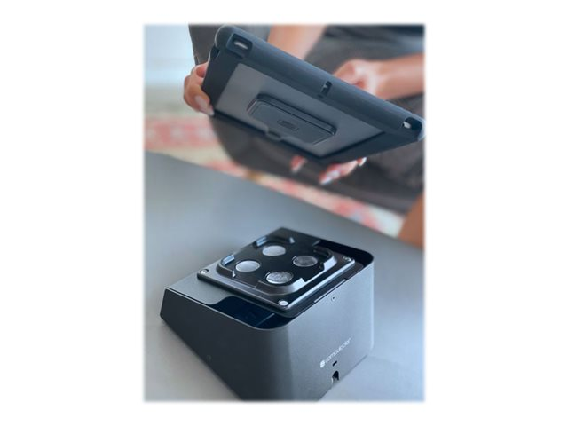 Bring flexibility to your business and checkout process with this unique tablet display and security solution. Magnetix is an all-in-one universal solution that works with all tablets and iPads brands and sizes, and enables you to display, secure, and hold the tablet by hand. Thanks to a unique customer-oriented design, the Magnetix enables to lift and hold the tablet, while it is secured to its base with a cable-lock. This provides a comfortable and elegant way for businesses to easily interact with their customer, and enable them to read and sign papers, register, and perform many other self-services without the concern of stealth attempts. The Magnetix Capsule kit consists of a 100 mm VESA magnetic plate that offers an easy way to lift the tablet and dock it back to place, and a cable lock slot. The included cable-lock provides the necessary security, and the Capsule stand acts as an elegant and efficient way to display the tablet and hide its cables. The kit also includes an adhesive plate that is fixed on any tablet or iPad and attaches to the Magnets. Its stylish design makes it discreet when the tablet is used off the stand and does not interfere with the user's experience. This extra mobility of the tablet enhances ADA (Americans with Disabilities Act) compliance, as it enables anyone to lift the tablet and hold it by hand or change its viewing angle. Magnetix Capsule is an ideal way to upgrade your existing tablet display solution and customer experience for businesses that want to enable their customers to fill out forms, sign papers, register, and read agreements comfortably, saving valuable time and resources.