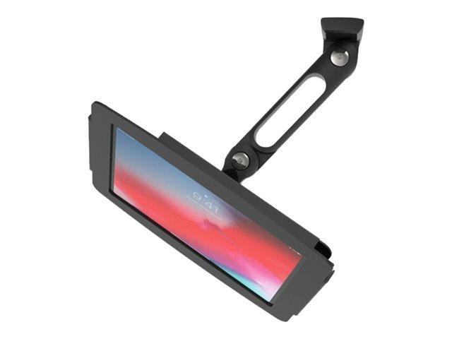 Swing Arm-stativet kan monteres på en hvilken som helst flat overflate, benkeplate eller vegg, og kan brukes som en sikker interaktiv skjerm eller kiosk.