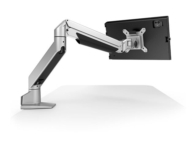 The Compulocks iPad Air M2 & M3 11" Apex Enclosure Reach Articulating Arm is designed for optimal tablet mounting functionality. Crafted from aluminum and a sturdy metal frame, this mounting kit supports a recommended display size of 11 inches. Featuring an articulating arm, it offers extensive adjustments in height, pan, tilt, and depth, allowing for a customized viewing experience that meets various needs. The integrated cable management keeps cables organized and out of sight, contributing to a sleek setup.