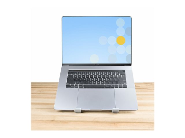 This aluminum laptop riser for desks raises and tilts your laptop for ergonomic comfort and increased productivity. Fits laptops up to 15.6".