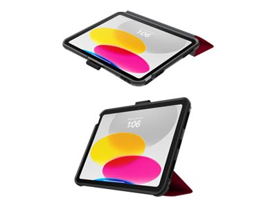Symmetry Series Folio clear folio case protects your tablet against drops, and its clear back makes it easy to identify engravings and asset tags. The microfiber folio lining guards the screen an elastic band holds it closed. The folio quickly converts into two positions for typing and viewing. Plus, the case stays put on slick surfaces thanks to no-skid rubber feet.
