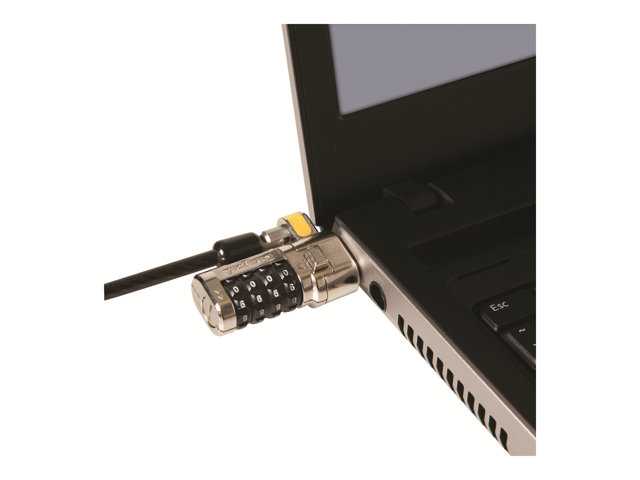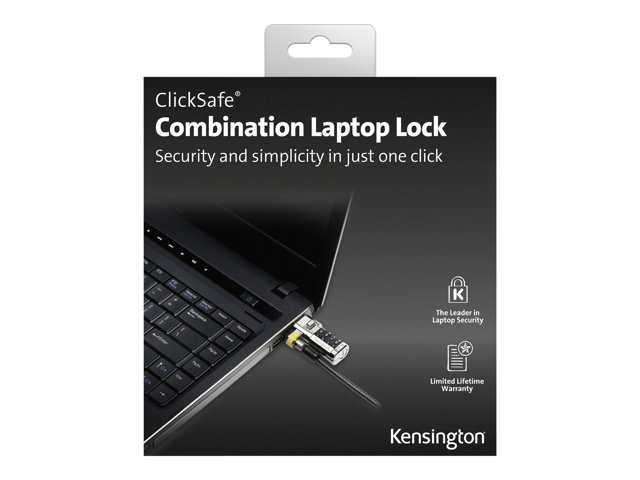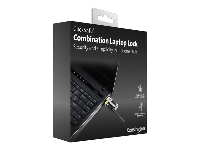 The Kensington ClickSafe Combination Laptop Lock offers effortless computer protection with just one click for the ultimate in physical security. The ClickSafe Security Anchor attaches to the industry standard Kensington Security Slot. A convenient 6' cable anchors to a desk, table or any fixed surface, and a keyless four-wheel combination offers 10,000 possible combinations.